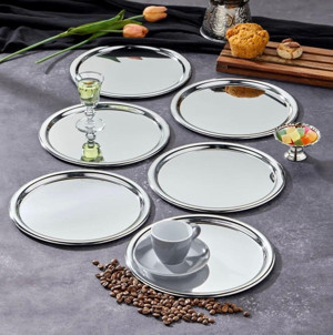 Dekoratif Paslanmaz Çelik 6 Lı Yuvarlak Model Servis Tepsisi Lüx Sunum
