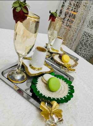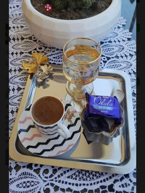 Paslanmaz Çelik Kare Model Tek Kişilik Kahve Tepsisi Kelebek Aksesuarlı Sunum