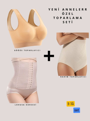 Yeni Anneler İçin Rahim Toparlayıcı Ve Lohusa Korsesi Ve Göğüs Toparlayıcı 3 Lü Rahatlık Seti