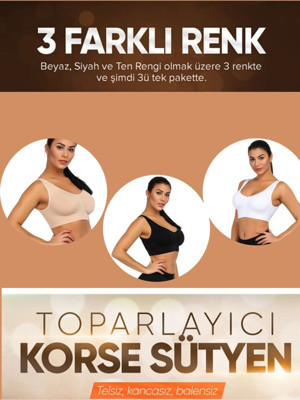 Kalın Askılı Pedsiz Toparlayıcı Sütyen Korse Spor Sütyen Büstiyer Üçlü Set (Siyah Beyaz Ten) 3 Lü