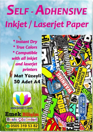Inkjet Ve Laser Uyumlu 50 Adet A4 Sticker Güçlü Yapışkanlı Etiket