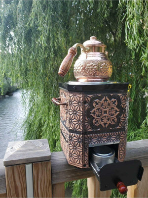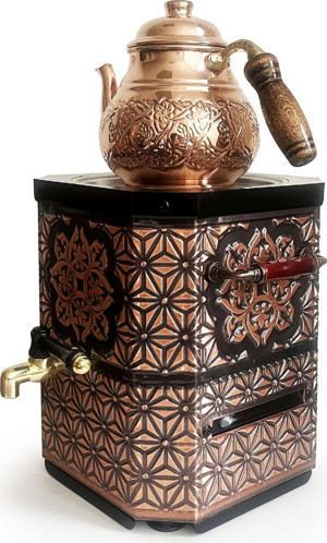 Bakır Jel Yakıtlı Nostaljik Semaver Çay Kazanı 3L Eskitme Vernikli
