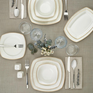 Emsan Açelya 60 Parça 12 Kişilik Porselen Kare Yemek Takımı