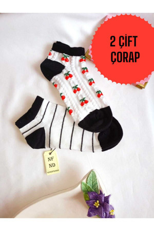 2 Çift Ekru Dikişsiz Patik Çorap Pamuklu Kısa Konç Desenli Kadın Çorabı 36-40 Siyah Beyaz