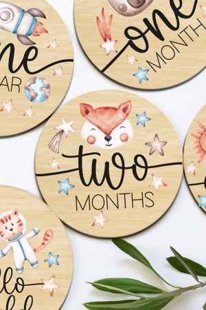 Uzay Temalı Aylık Bebek Kartları Ingilizce Milestone Cards Astronot Hayvanlar Ay Kartları