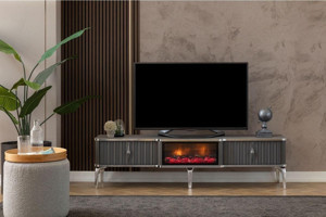 Şömineli Derya Antrasit Gümüş Tv Ünitesi