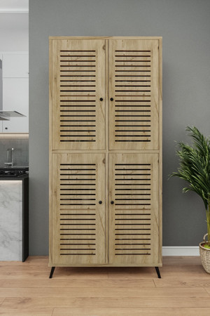 Enwood DENEB MDF ATLANTİK ÇAM RENGİ 4 Kapaklı(Panjur Kapak) Ahşap Ayaklı Kiler Dolabı - Image 1