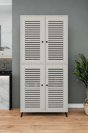 Enwood Deneb Mdf Gri? 4 Kapaklı (panjur Kapak) Ahşap Ayaklı Kiler Dolabı - Image 1