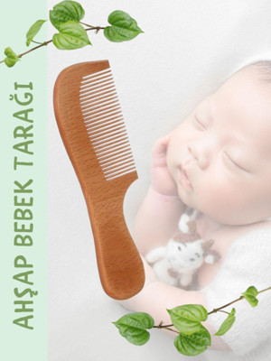 %100 Doğal Ahşap Bebek Tarağı - Hassas Bebek Saç Bakımı - Kolay Ve Nazik Tarama