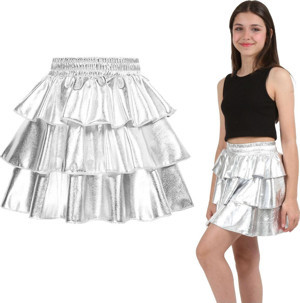 Kız Çocuk Beli Lastikli Metalik Parlak Işıltılı 3 Katlı Fırfırlı Etek