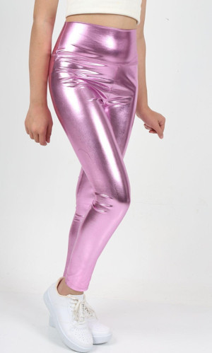 Kız Çocuk Metalik Yüksek Bel Parlak Işıltılı Spor Yoga Koşu Fitness Egzersiz Taytı