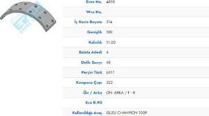 KAMPANA BALATA YENI MODEL FORD CARGO 18.38 ORGANIC 19939