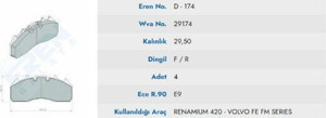 DISK BALATA RENAULT 440 PREMIUM / VOLVO FE FM SE 29174