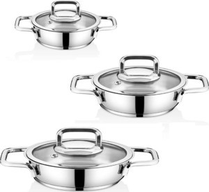 Falez Vento Extra Kalın Cam Kapaklı 3 Lü Çelik Sahan Seti - Küçük Boy ( 16-18-20Cm )