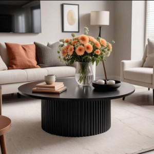Eriza Nare, Yuvarlak Modern Çıtalı Orta Sehpa, Siyah