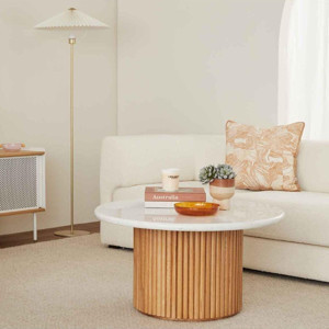 Eriza Nare, Yeni Nesil Modern Yuvarlak Ekru & Natural Ahşap Orta Sehpa
