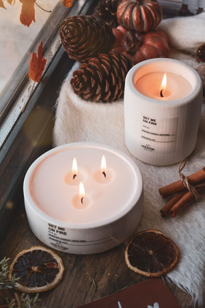 Büyük Boy Kokulu Mum, Beton Saksılı Dekoratif Vegan Mumu