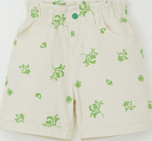 Kız Çocuk Jean Şort Çiçek Desenli 10-14 Yaş, Krem