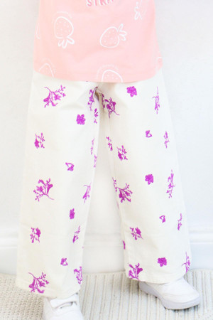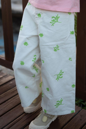 Kız Çocuk Jean Pantolon Çiçek Nakışlı Geniş Paça 5-14 Yaş, Krem