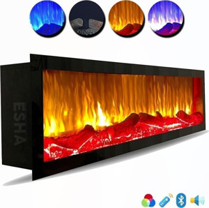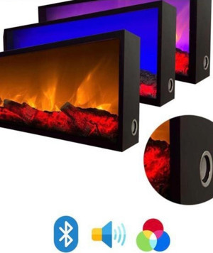 Dekoratif Elektrikli Yapay Şömine Farklı Renk Modları, Kumandalı, Bluetooth 100X25 Cm