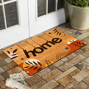Home Bohem Temalı Dağ ve Yaprak Desenli Kapı Önü Paspası 45x70 Cm