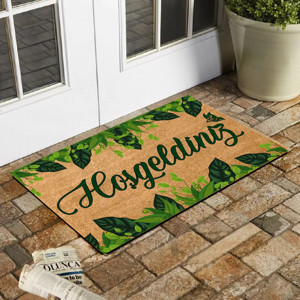 Yeşil Sarmaşıklı Yaprak Desenli Hoşgeldiniz Yazılı Kapı Önü Paspası 45x70 Cm