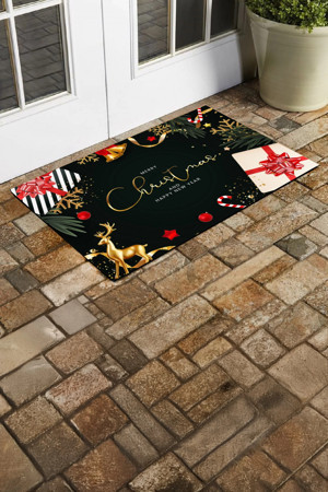 Mutlu Yıllar Merry Christmas and Happy New Year Welcome Yeşil Kapı Önü Paspası 45x70Cm