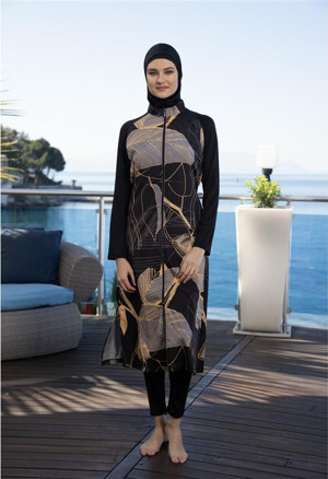 Düz Kol Paça Lastikli Fermuarlı Tam Kapalı Tesettür Mayo