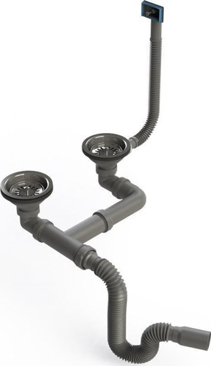 Çöpmak Büyük Süzgeçli, Çiftli, Taşmalı ve Körüklü Gri Mutfak Evye Sifonu