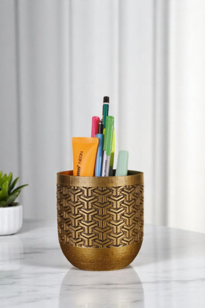 Kalemlik Altın Eskitme Renk Masa Kalemliği Organizer Kalemlik Model 17
