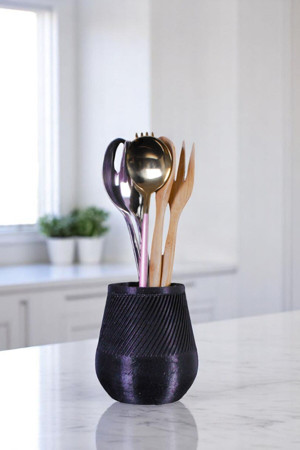 Tezgah Üstü Kaşıklık Dekoratif Dik Kaşıklık Silindir Kaşıklık Gümüş Eskitme Renk Model 89