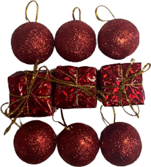 YILBAŞI AĞAÇ SÜSÜ KIRMIZI TOP VE HEDİYE PAKETİ 9'LU 3 CM