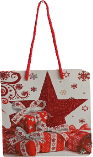 YILBAŞI KARTON ÇANTA SİMLİ KIRMIZI YILDIZLI PAKETLİ 15 X15