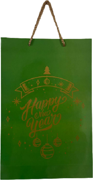 YILBAŞI KARTON ÇANTA YEŞİL HAPPY NEW YEAR 26X40