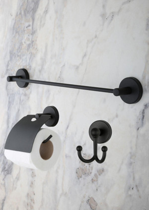 Banyo Seti Yuvarlak Havluluk Kapaksız Tuvalet Kağıtlığı Mat Siyah