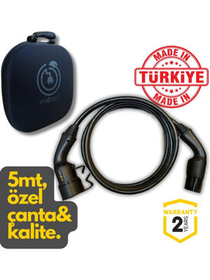 Evşarj Elektrikli Otomobil Araç Şarj Kablosu AC / 22KW/ 32A/ Trifaz