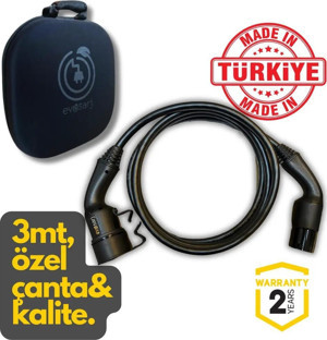 Elektrikli Araç Ara Şarj Kablosu 32A, 22Kw, 3Mt, Tip2, Özel Çantalı