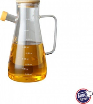 Bambu Kapaklı Borosilikat Cam Damlatmaz Yağlık Sirkelik Sosluk - 900 Ml