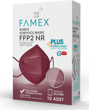 N95 FFP2 KORUYUCU MASKE BORDO RENK 10 ADET TEKLİ PAKET DUCK MODELİ