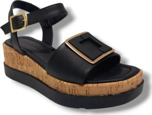 Fancy 2005-25 Deri Yanları Açık Dolgu Topuk Kadın Sandalet - Image 1
