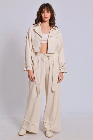 PAÇASI YIRTMAÇLI PANTOLON EKRU