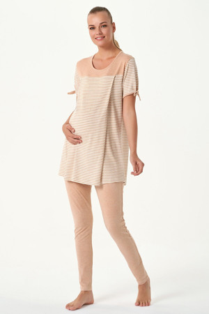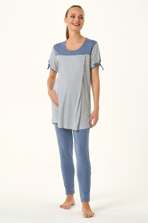 Kadın Hamile & Lohusa Taytlı Çizgili Ikili Takım & Pijama Takımı