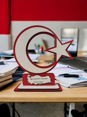Öğretmenler Gününe Özel Türk Bayraklı Masaüstü Plaket
