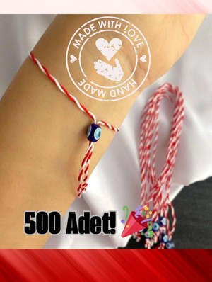 250 Adet Nazar Boncuklu Marteniçka Bileklik – Bahar ve Şans Dilek İpi (Kırmızı Beyaz)