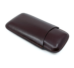Deri Puro Kılıfı / Seyahat Humidoru Üçlü - Koyu Kahverengi