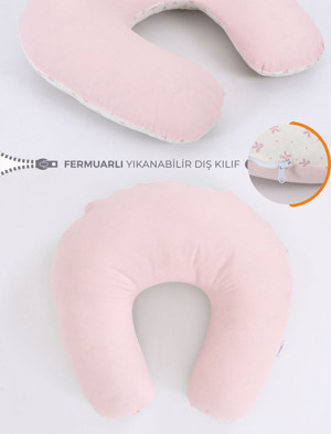 Çift Taraflı Emzirme Yastığı Bebek Destek Minderi Hamile Yastığı %100 Pamuk - Pudra Fiyonk