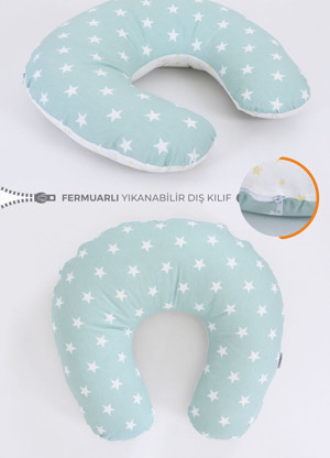 Çift Taraflı Emzirme Yastığı Bebek Destek Minderi Hamile Yastığı %100 Pamuk - Bebek Yeşili Sarı