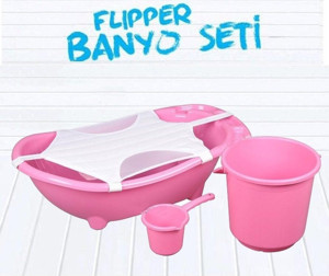Bebek Banyo Küvet Seti - 4'lü Bebek Banyo Küveti - Pembe