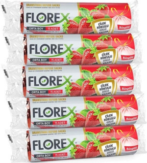 Florex Büzgülü Çilek Kokulu Orta Boy Çöp Poşeti 55X60 Cm 25 Rulo