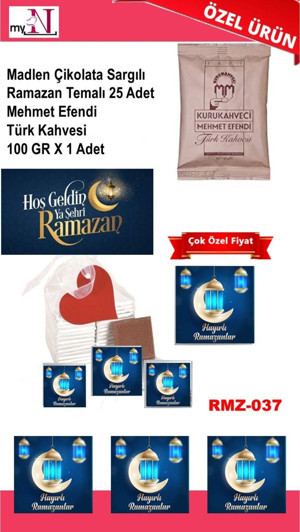 Madlen Çikolata Sargılı Ramazan Temalı 25 Adet - Mehmet Efendi Türk Kahvesi 100 Gr X 1 Adet